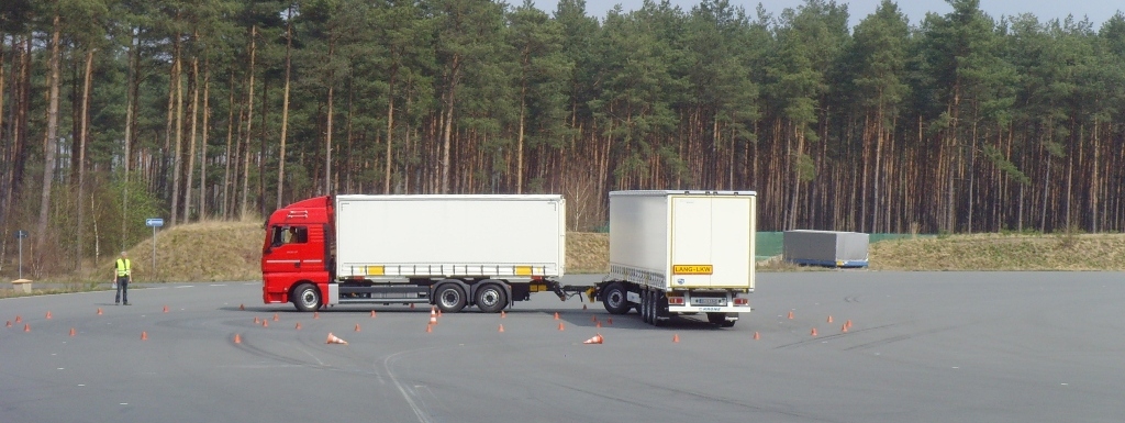 Besonderes Interesse zeigten die Teilnehmer zudem an der Demonstration des Fahr- und Rangierverhaltens eines Lang-Lkws im genau definierten so genannten BO-Kraftkreis (entsprechend einem kleinen Kreisverkehr) im Gegensatz zu herkömmlichen Fahrzeugen.