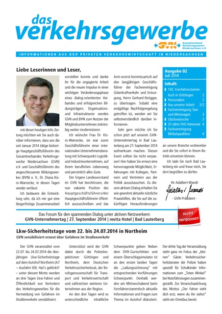 Mit unserer Info-Zeitung wollen wir nicht nur unsere Mitglieder, sondern auch unsere Partner aus Behörden, Organisationen, Industrie und Handel über Aktuelles aus dem Verbandsalltag und der Verbandsarbeit informieren.