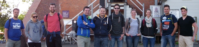 Nach dreieinhalb Stunden war die zu Hamburg gehörende Insel erreicht, ohne Verluste und Blessuren. Nun konnten Hunger und Durst gestillt werden, bevor es mit der Inselführung weiterging. Auch hier brillierte Karsten Bonk mit Detailwissen zur Geschichte der Insel und seiner Bauwerke, konnte aber auch mit kuriosen Geschichten zu einem Fußballturnier oder zur Zwergschule mit nur einem Schüler aufwarten.