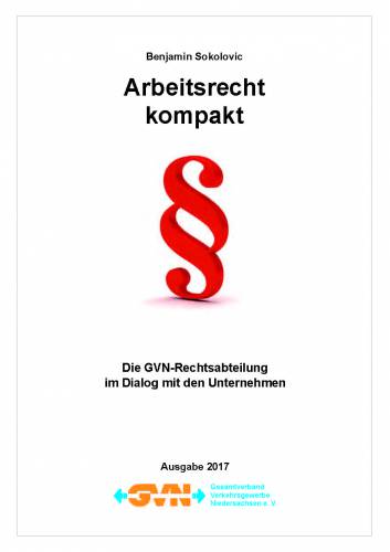 Das neue Buch „Arbeitsrecht kompakt“ ist ab sofort erhältlich. Interessierte Mitglieder können es bei der GVN-Rechtsabteilung telefonisch unter 0511 9626-210 oder per E-Mail robinson@gvn.de kostenlos anfordern oder nachfolgend downloaden.