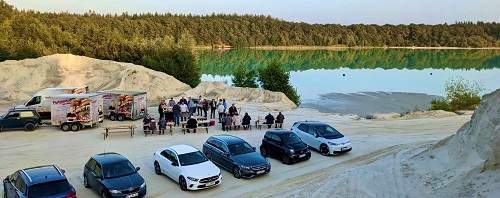Das Wetter spielte mit, denn pünktlich zu Beginn des Klönabends kam die Sonne noch hervor und verwandelte die Sandgrube der Firma Siebels in Aurich-Tannenhausen in eine Karibik-Location mit türkisfarbenem Wasser.